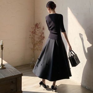 ロング丈のフレアデザインが動くたびに優雅に揺れ、様々なシーンで自信を持って着こなせます♩