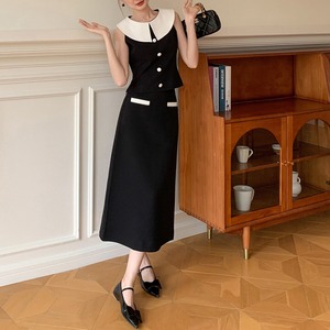 バイカラー ノースリーブトップス フレアスカート セットアイテム