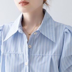 パフスリーブとストライプ柄が特徴で、ビジネスシーンからカジュアルなデイリーコーデまで幅広く活躍します♡