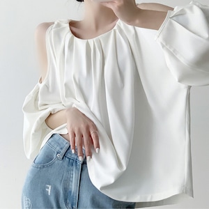 オープンショルダーギャザーブラウス