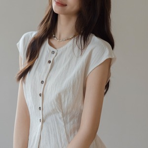 リネン素材がもたらす通気性の良さと、ラウンドネックの柔らかな印象が、快適さを追求した一着となっています。