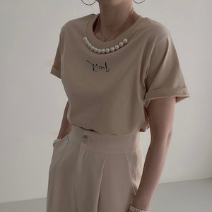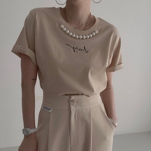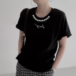ラウンドネック パールモチーフ Tシャツ(3color)