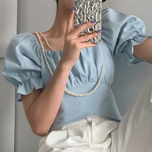 バックシャン パフスリーブ ショートトップス
