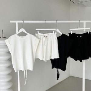 シンプルTシャツ ドロストショートパンツ セット