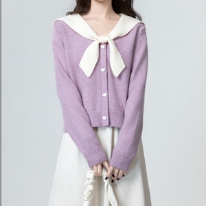 ボウタイ フロントボタン 長袖 セーター