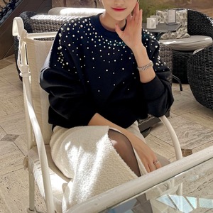 きらりパールで、シンプルに華やぐ♡パールスウェットトップス (2color)