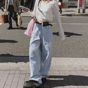 可愛らしさとトレンド感を兼ね備えたダメージワイドデニム!