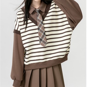 可愛らしさときちんと感を兼ね備えたタイ付きボーダー長袖スウェット!
