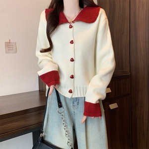 バイカラー ハートボタン 長袖 カーディガン (2color)