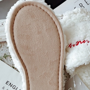 ボリュームたっぷりのふわふわ素材が、足全体を優しく包み込みます。まるでぬいぐるみのような触り心地で、履いた瞬間から幸せな気分に。