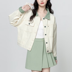 このデニムジャケットは、春色カラーが魅力的な特別なアイテムです!
